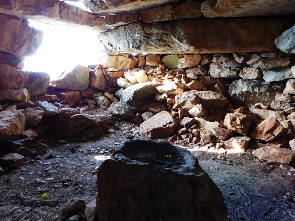 Το κτίσμα βρίσκεται στο χείλος μιας απόκρημνης πλαγιάς του βουνού και έχει εκπληκτική θέα προς το Λεκανοπέδιο. Έχει σχεδόν κυκλική κάτοψη με μέγιστη διάμετρο 5,30 μέτρα και μέγιστο ύψος στο εσωτερικό 1,85 μέτρα. ‘Έχει δύο ανοίγματα, το ένα μεγαλύτερο ως είσοδο και το άλλο μικρότερο ως φωταγωγό. Στο κέντρο του κτίσματος υπάρχει μια λαξευμένη πέτρα η οποία θεωρείται ότι αποτελούσε βωμό για λατρευτική χρήση, ενώ στα τοιχώματα υπάρχουν λαξευμένες εγκοπές για διάφορες άλλες χρήσεις. Τέλος, στον τοίχο προς τη μεριά του μικρότερου ανοίγματος, υπάρχει πιθανόν λαξευμένο ένα πρόσωπο.