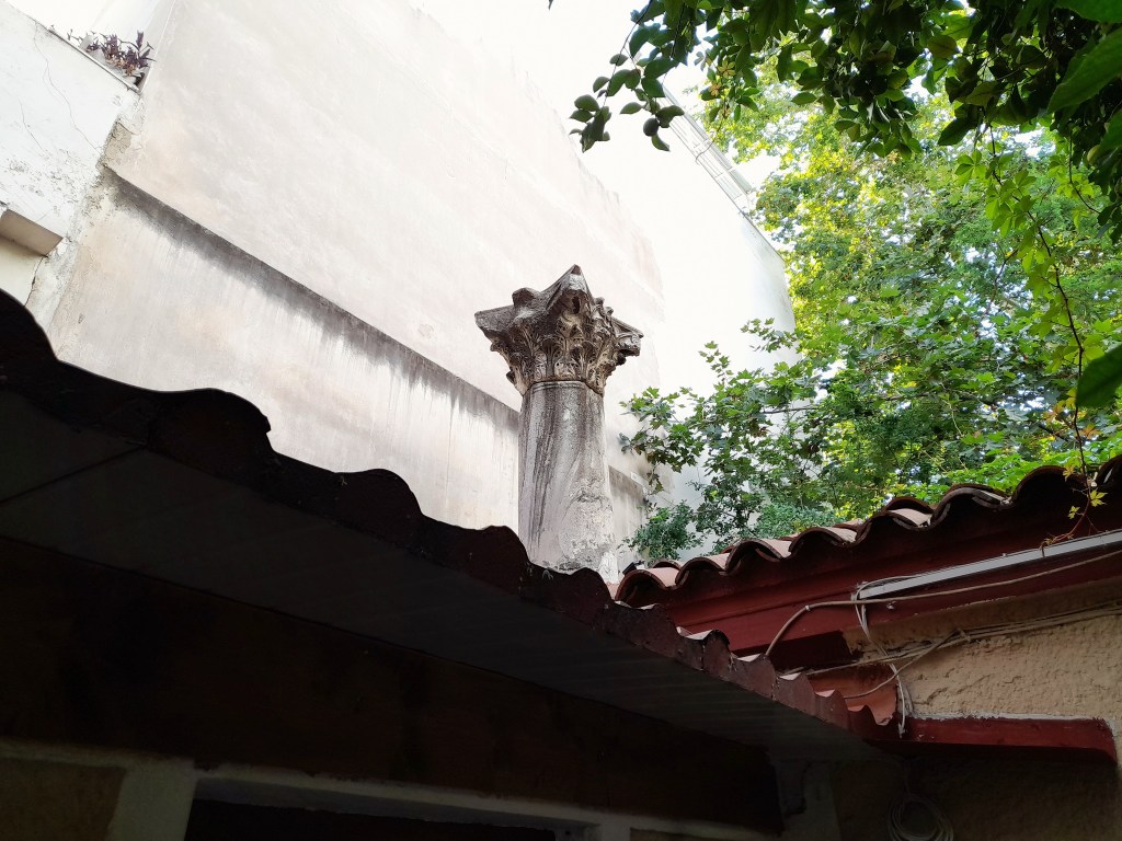 Crossing the always bustling Evripidou Street among the people, the cars, and the smells of the spices, it is difficult to notice the small church of Agios Ioannis (Saint John). It is even more difficult behind the tall trees of its courtyard to notice the ancient column projecting through the roof. But it is one of the most interesting attractions in the centre of Athens. The church is dedicated to Saint John the Baptist and celebrates on August 29. The church was built in the 6th century AD, and its sanctuary was formed around an ancient Corinthian column. According to archaeologists, the column belonged to a sanctuary of Asclepius. The sanctuary was at the site along with a monument dedicated to the ancient Athenian physician Toxaris. Toxaris was considered a healer of fever and helped the Athenians during the plague of 430 BC.